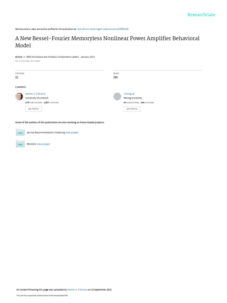 model, nonlinear RF power amplifier (PA) behavioral model.