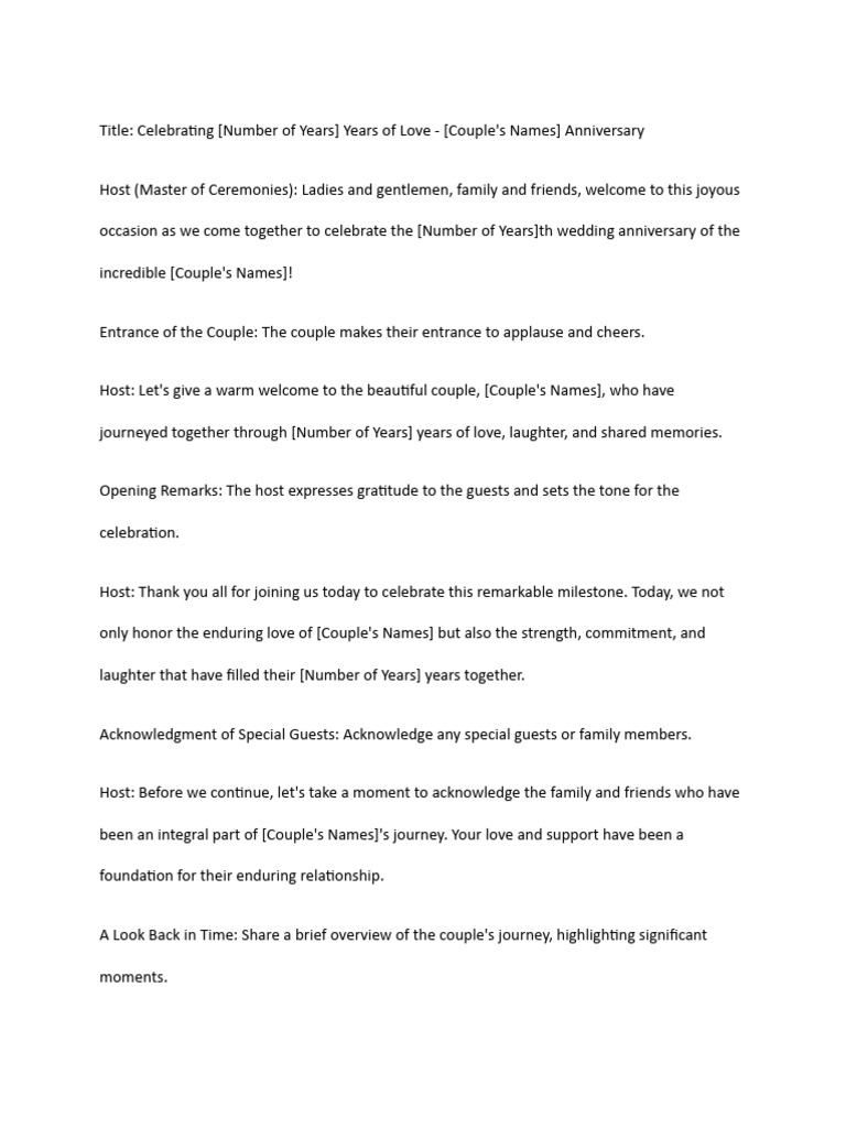 Host: In celebration of [Couple's Names]'s [Number of Years] years of marriage, they have