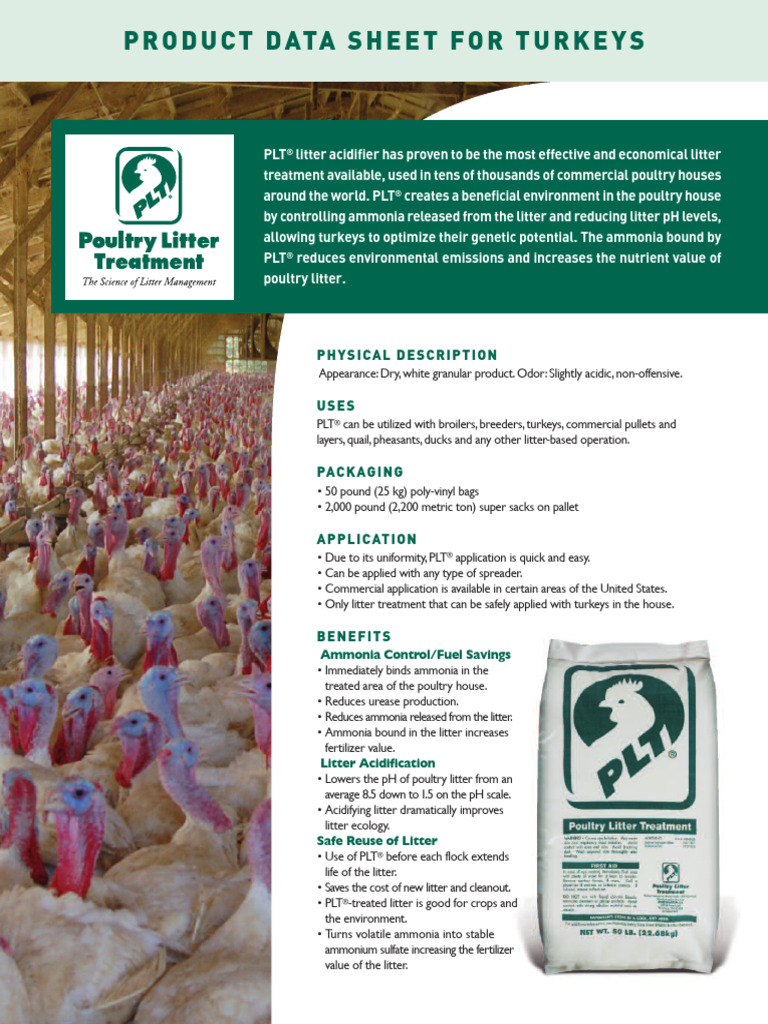 • Only litter treatment that can be safely applied with turkeys in the house.