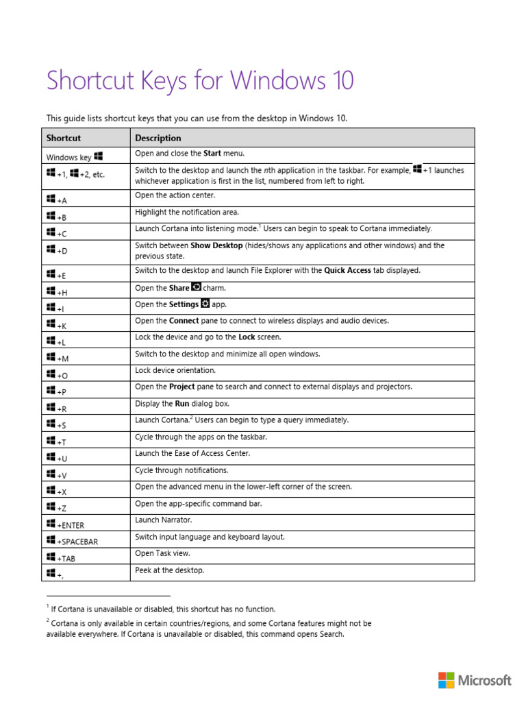 This guide lists shortcut keys that you can use from the desktop in Windows 10.