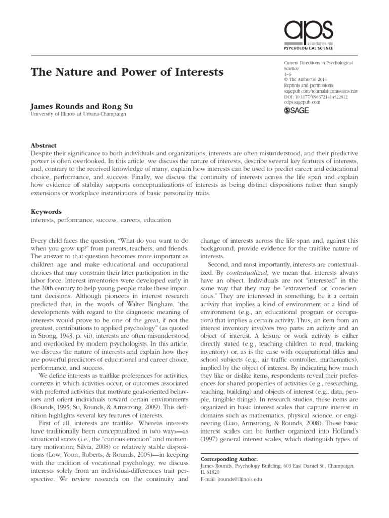 60 years of research. Perspectives on Psychological Science, Su, R. (2012). The power of vocational interests and interest con-