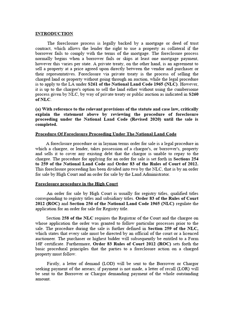 Procedure Of Foreclosure Proceeding Under The National Land Code
