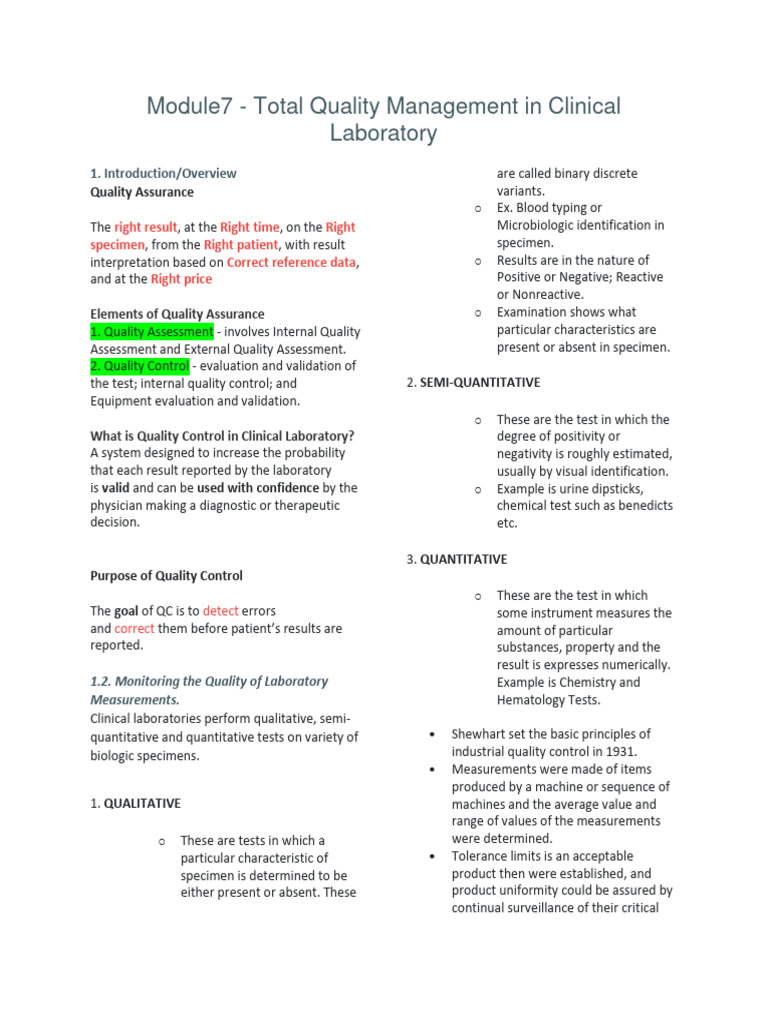 quantity to be used by many laboratories or by 3. The actual quality assessment and monitoring