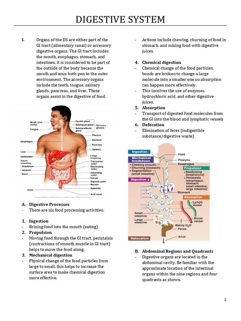 I. Organs of the DS are either part of the - Actions include chewing, churning of food in