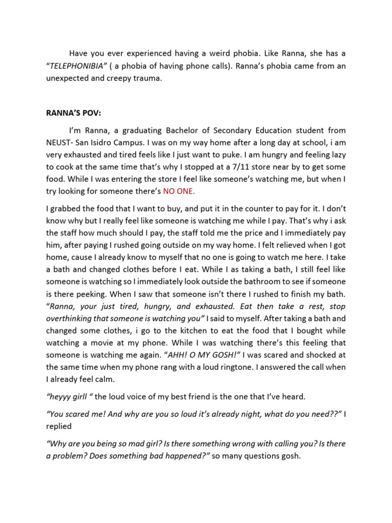 “TELEPHONIBIA” ( a phobia of having phone calls). Ranna’s phobia came from an