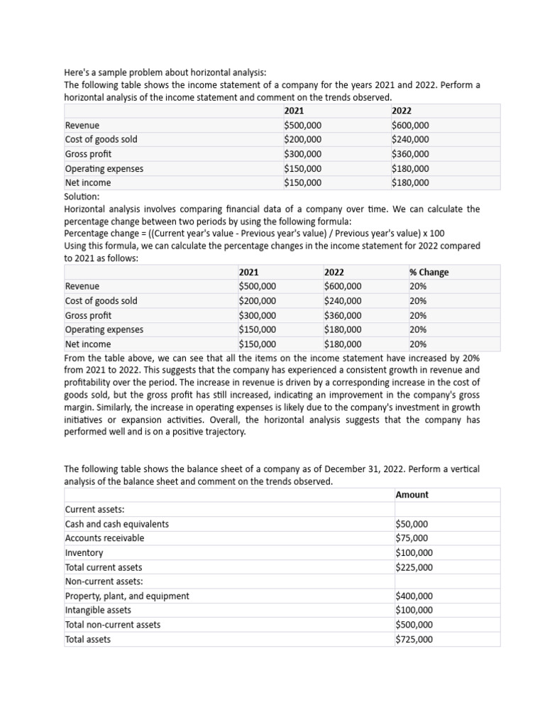 Here's a sample problem about horizontal analysis: