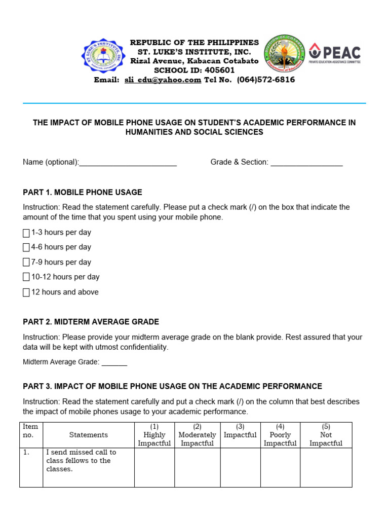 Generally, this study aims to determine the impact of mobile phone usage on the academic