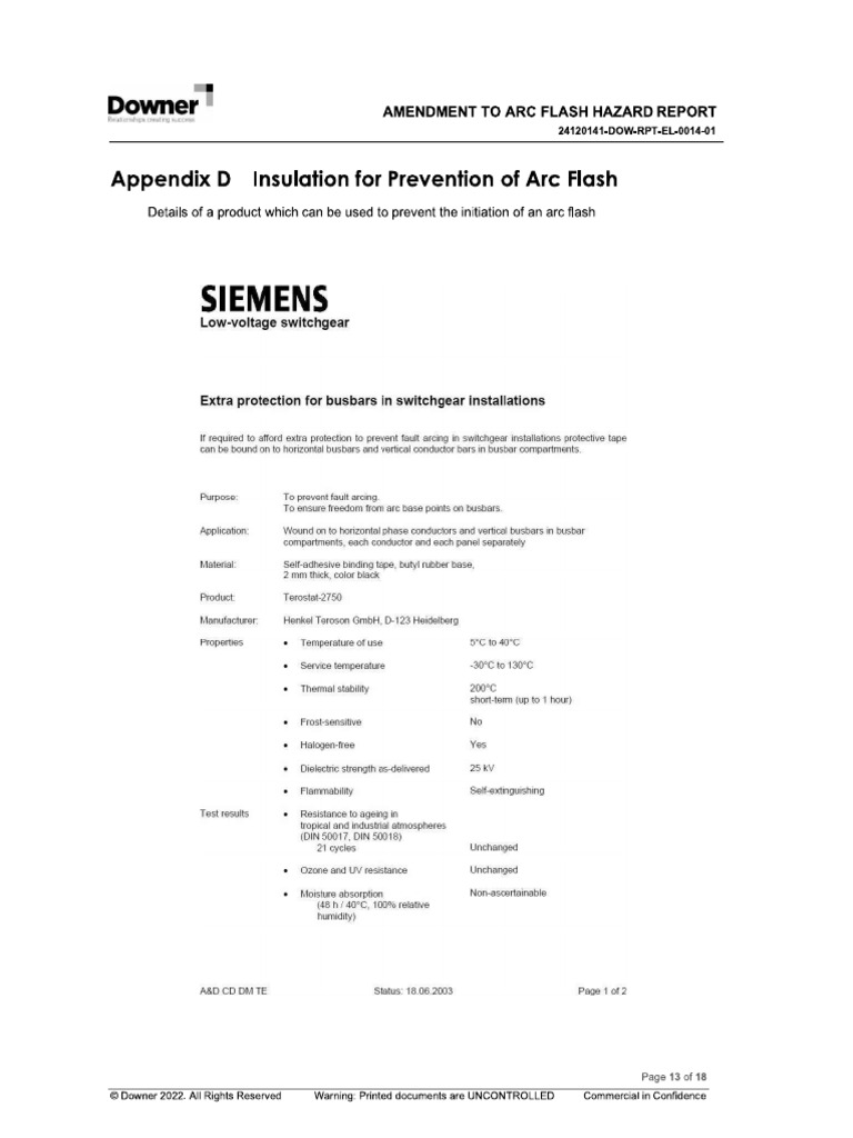 ‘Waring: Pinted documseris ae UNCONTROLLED Commorealin ContdonesDowner * AMENDMENT TO ARC FLASH HAZARD REPORT