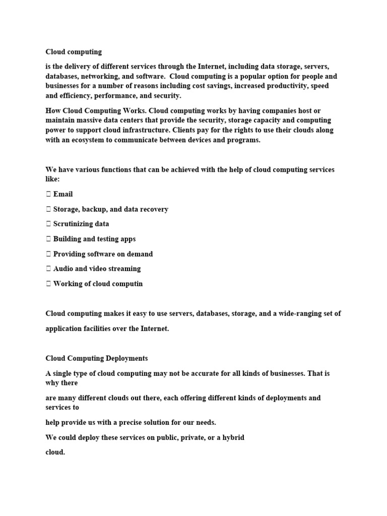 Now that we have seen the type of deployments that cloud computing can provide let us
