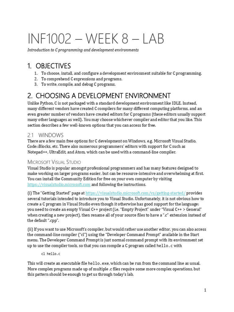 up to use the compiler tools, so that you can compile a C program called hello.c with