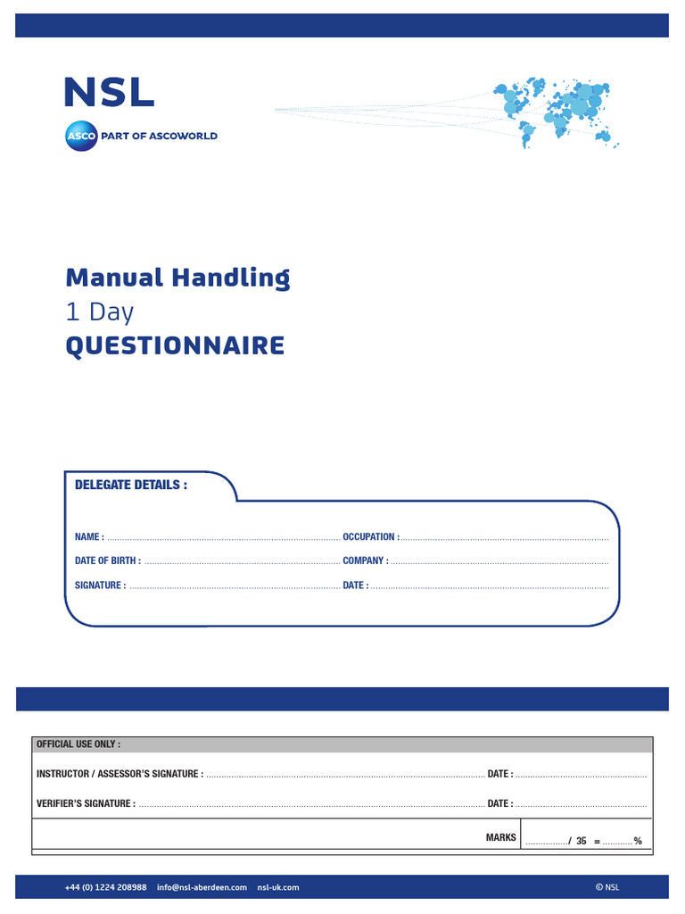 Questionnaire | Manual Handling www.nsl-aberdeen.com