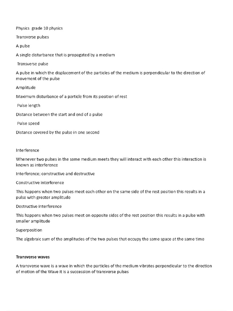 of motion of the Wave itis a succession of transverse pulsesCrest