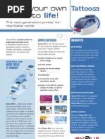Tattoo2 is the ideal solution for printing single-sided cards, individually or in small runs. Tattoo2 is a multi-feature printer that prints texts, logos and barcodes in less than a minute, in color or monochrome, and can also encode magnetic stripes. Designed to deliver a few hundreds of cards per year, Tattoo2 offers an attractive quality / price ratio, and outperforms all other competing printers.