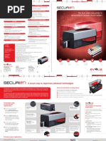 Color printing module, 300 dpi print head (11.8 dots/mm) USB connection (cable supplied) 16 MB of RAM Detachable feeder with a capacity of 100 cards (0.76 mm or 30 mil) Output hopper with a capacity of 15 cards (0.76 mm or 30 mil) Automated adjustment of card thickness Control panel with 1 button and 4 LEDs Cover color: Fire Red RoHS-compliant Color-dye sublimation and monochrome thermal transfer Integrated ribbon saver for monochrome printing Ethernet TCP-IP available as an option , Magnetic stripe encoder ISO 7811 HiCo/LoCo or JIS2 Additional 100-card feeder Manual card feeder Travel case Cleaning kit 5-panel YMCKO color ribbon: 100 cards/roll Monochrome ribbons: - up to 600 cards/roll (black, red, green, blue) - up to 500 cards/roll (white, gold and silver) BlackWAX monochrome ribbon (for ABS & special varnish plastic cards): up to 600 cards/roll Color (YMCKO): 40 sec per card Monochrome: 7 sec per card Manual (card by card) Card feeder with delivery in output hopper ISO CR-80 ISO 7810 (53.98 mm x 85.60 mm 3.375 x 2.125) All PVC, Composite PVC cards, PET, ABS1 and special varnish1 cards From 0.25 mm (10 mil)2 to 0.76 mm (30 mil) Arial 100, Arial bold 100 Barcode: Code 39, 2/5 interlaced Windows 7, XP and Vista (32 & 64 bits) Drivers for Windows 2003 and 2000 available on demand Macintosh OS X v10.2 10.6 Linux eMedia Card Designer Software for designing and editing badges, 30-day free trial - Compatible with Windows 7, XP Server 2003 and Vista 32 & 64 bits , USB port (cable supplied), Ethernet TCP-IP available as an option Without output hopper: 166 mm (6.53) (H) x 290 mm (11.42") (L) x 187 mm (7.36) (W) With output hopper: 166 mm (6.53) (H) x 368 mm (14.49") (L) x 187 mm (7.36) (W) 2.4 Kg (5.3 Lbs) Power supply: 100-240 V AC, 50-60 Hz, 1.5 or 1.8 A Printer: 24 V DC, 3 A Min/max operating temperature: 15 / 30 C (59 / 86 F) Humidity: 20% to 65% non-condensing Min/max storage temperature: 5 / +70 C (23 / 158 F) Storage humidity: 20% to 70% non-condensing Operating ventilation: free air 2 years (printer and print head), unlimited printouts3