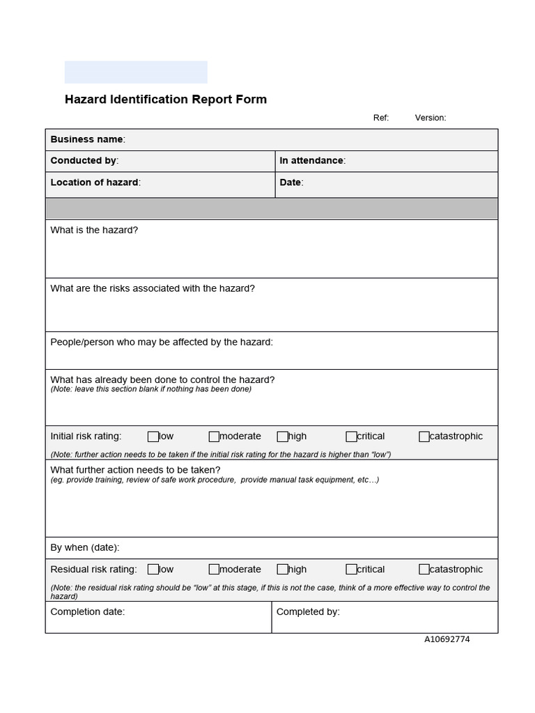 (Note: further action needs to be taken if the initial risk rating for the hazard is higher than “low”)