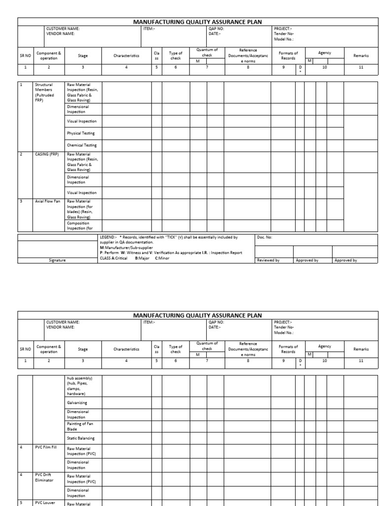 MANUFACTURING QUALITY ASSURANCE PLAN