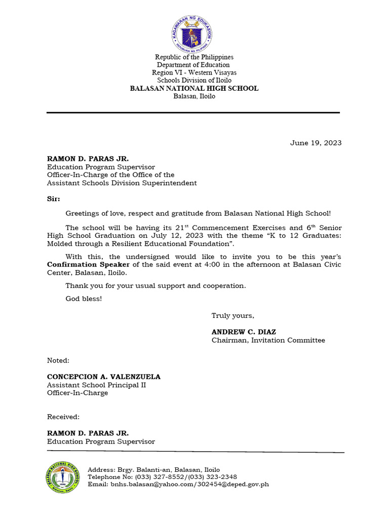 Confirmation Speaker of the said event at 4:00 in the afternoon at Balasan Civic