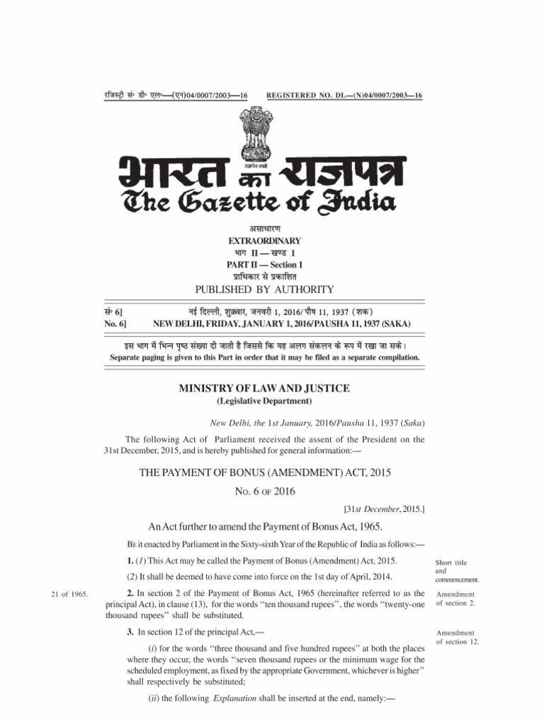 ‘THE PAYMENT OF BONUS (AMENDMENT) ACT, 2015