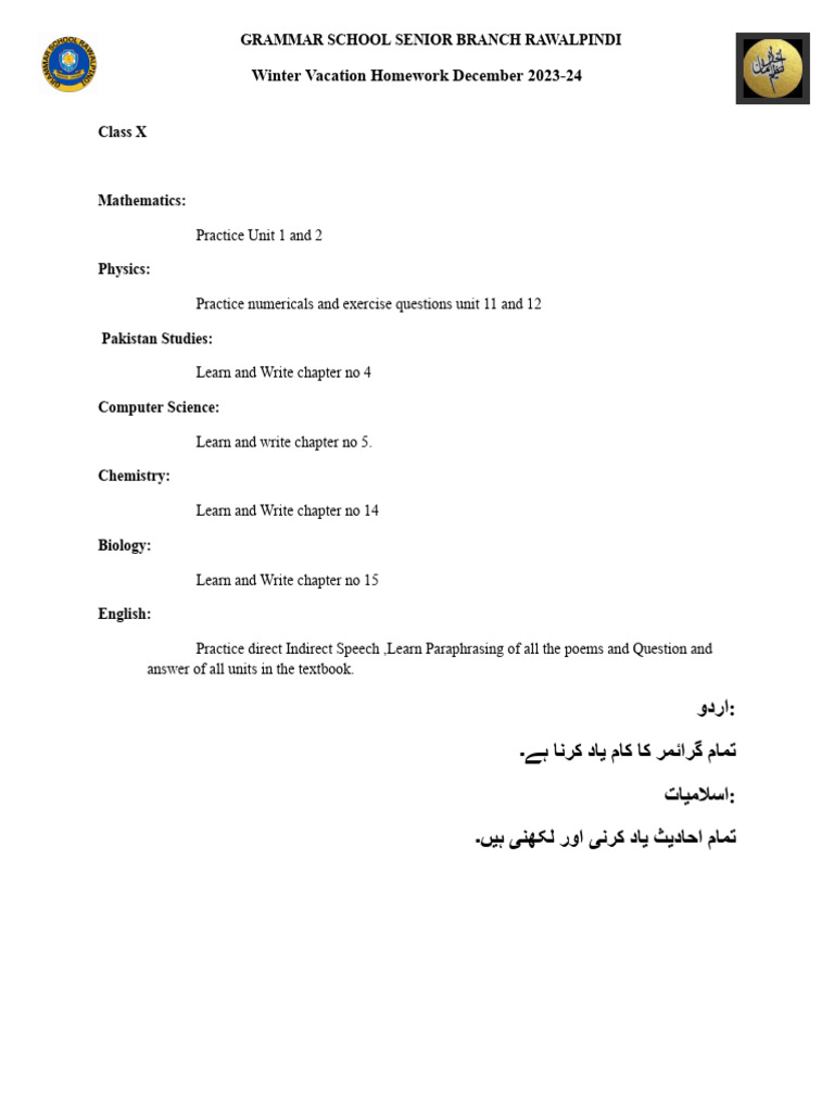 ● Learn and write unit 1,2 and practice short questions of unit 3.