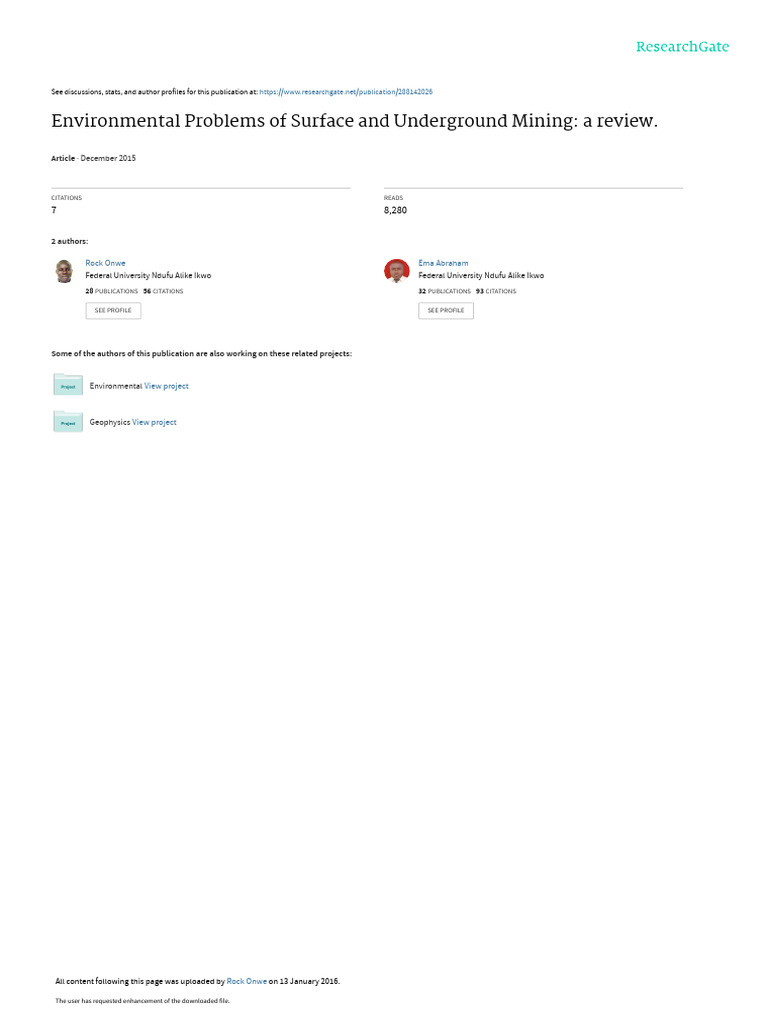 Keywords: environment, externalities, irreversible, mining, mitigation, pollution and review.