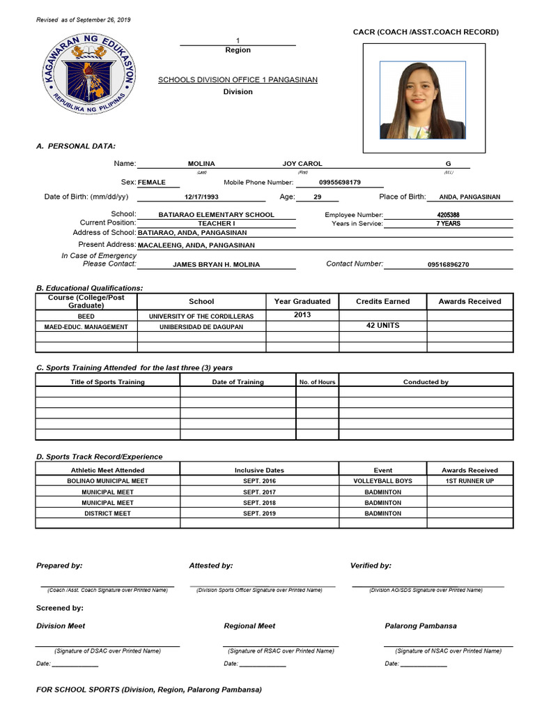 School: BATIARAO ELEMENTARY SCHOOL Employee Number: 4205388