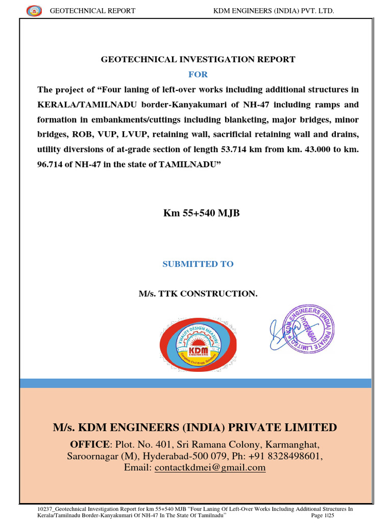 10237_Geotechnical Investigation Report for v of the project for km 55+540 MJB “Four laning of left-over works including additional structures in Kerala/Tamilnadu Border-Kanyakumari of NH-47 in the state of