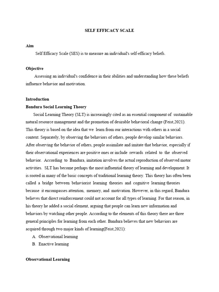 Self Efficacy Scale (SES) is to measure an individual's self-efficacy beliefs.