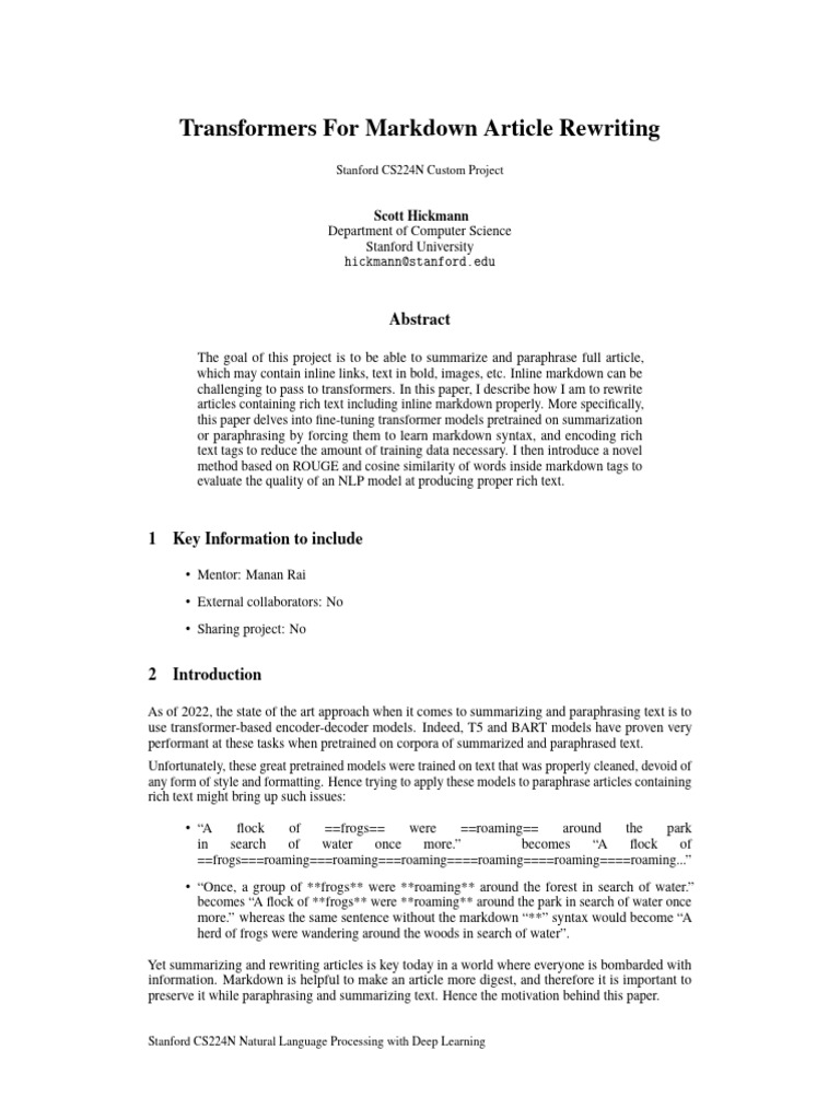 Transformers For Markdown Article Rewriting