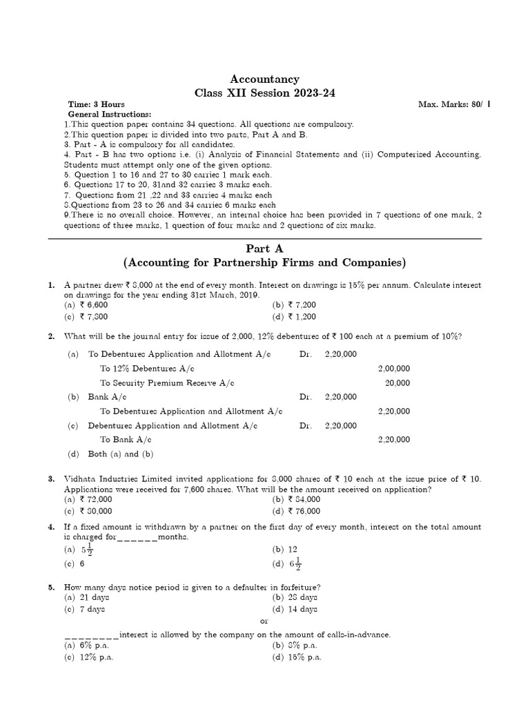[Link] question paper is divided into two parts, Part A and B.