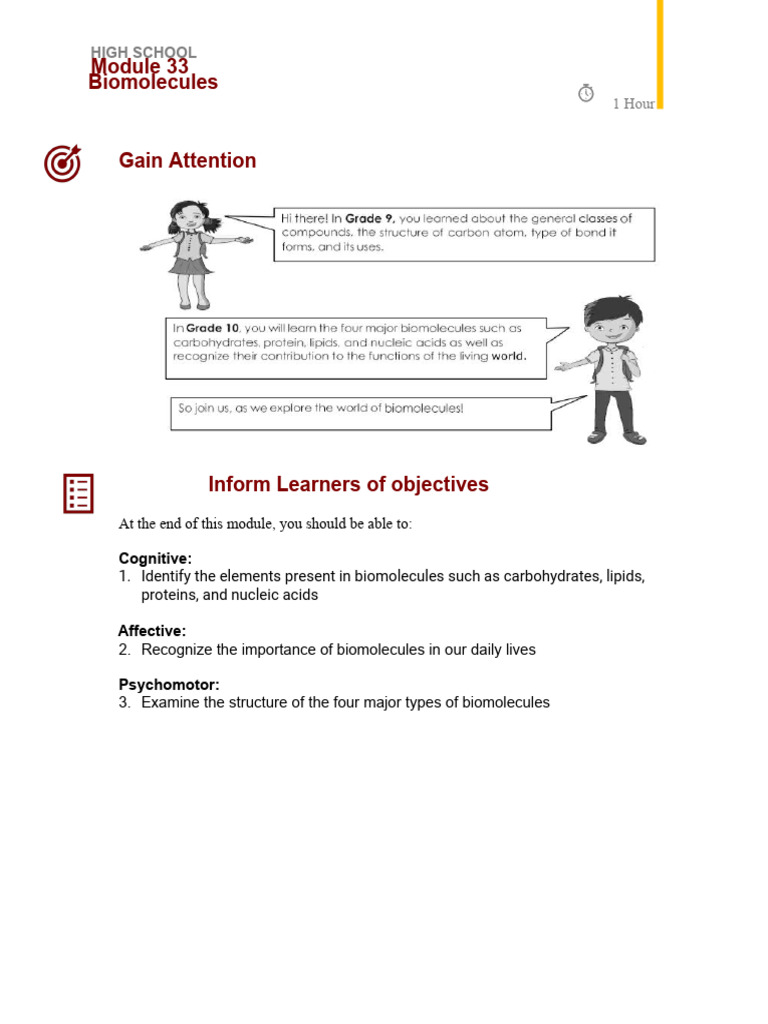 1. Identify the elements present in biomolecules such as carbohydrates, lipids,