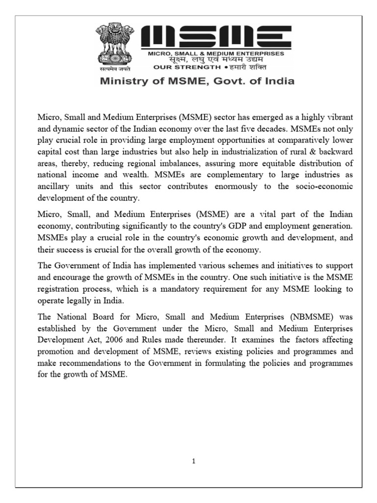 registration process, which is a mandatory requirement for any MSME looking to