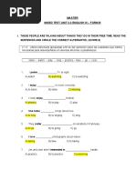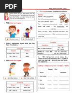 The document is a fill-in-the-blanks activity with 4 statements asking the reader to provide words to complete each one, asking about their identity, food preferences, drink preferences, and favorite activities.