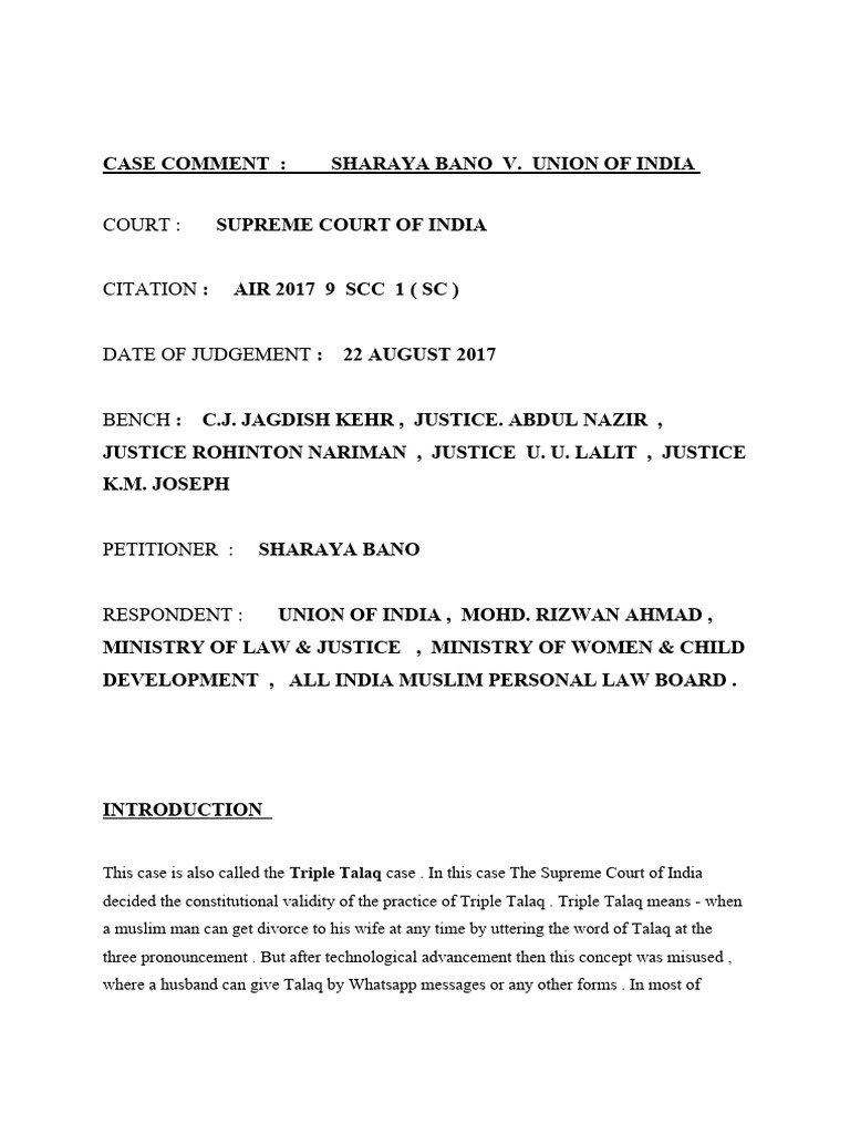 This case is also called the Triple Talaq case . In this case The Supreme Court of India