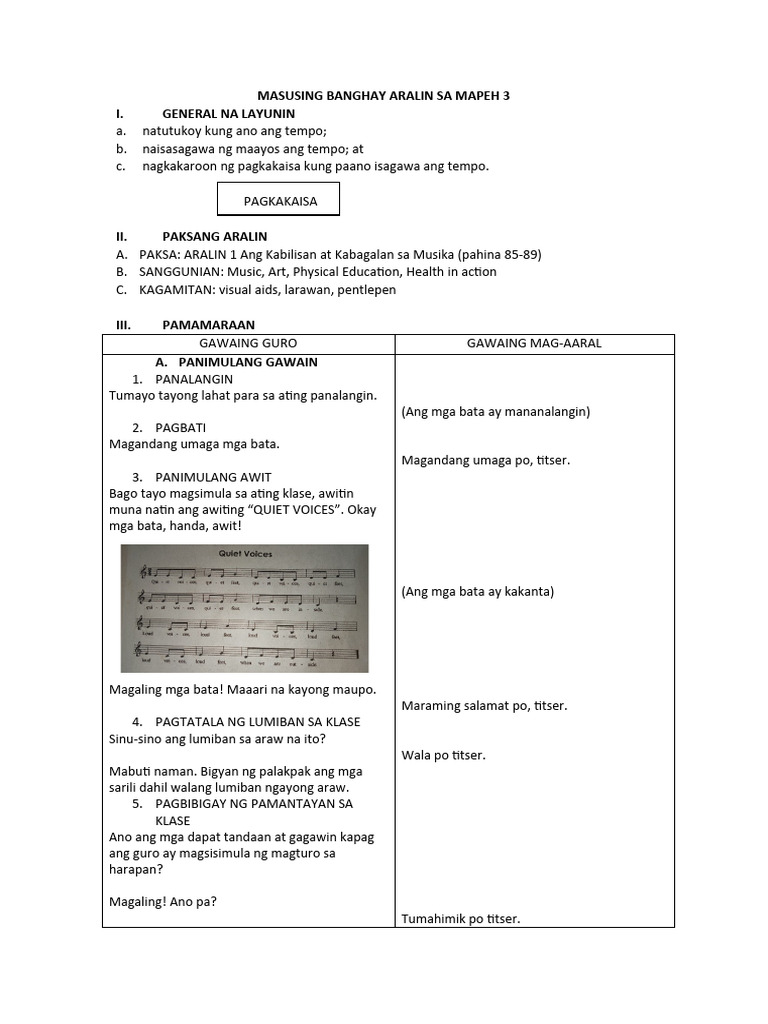MASUSING BANGHAY ARALIN SA MAPEH 3
