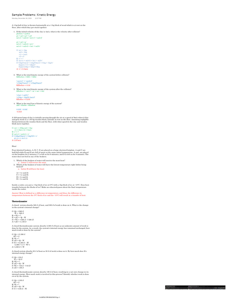½(1kg)(1m/s)² + ½(1kg)(0m/s)²