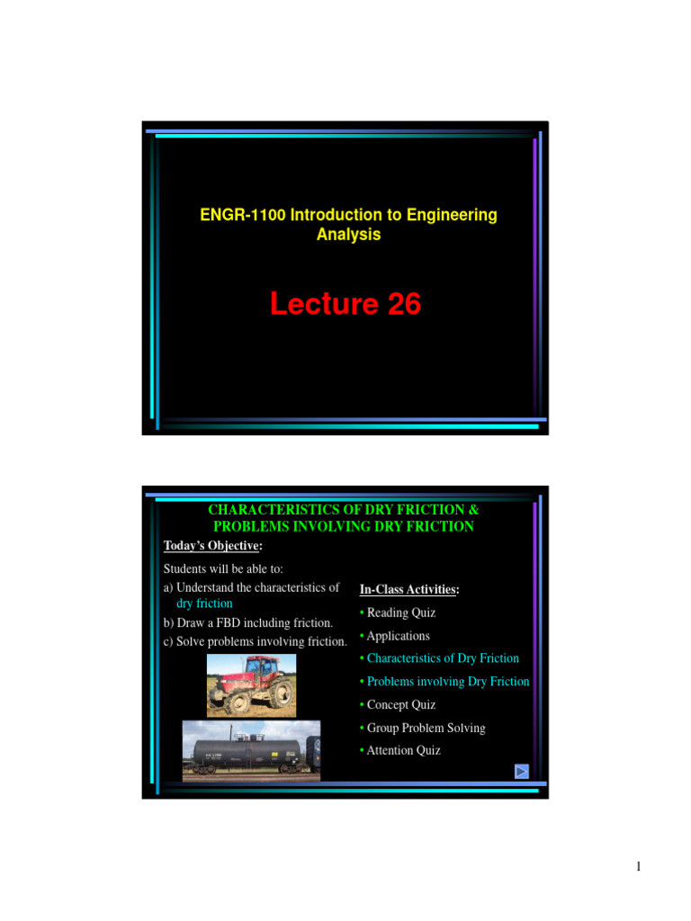 • Problems involving Dry Friction