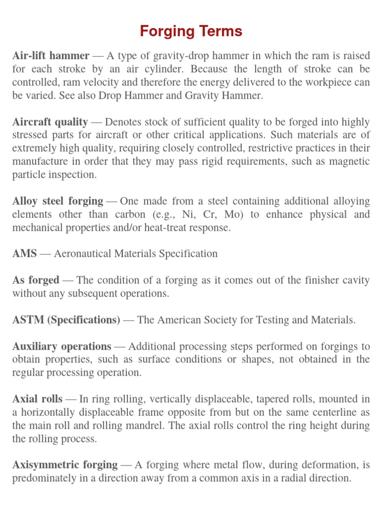 As forged — The condition of a forging as it comes out of the finisher cavity