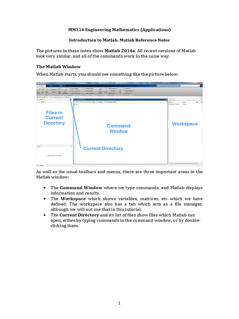The pictures in these notes show Matlab 2014a. All recent versions of Matlab