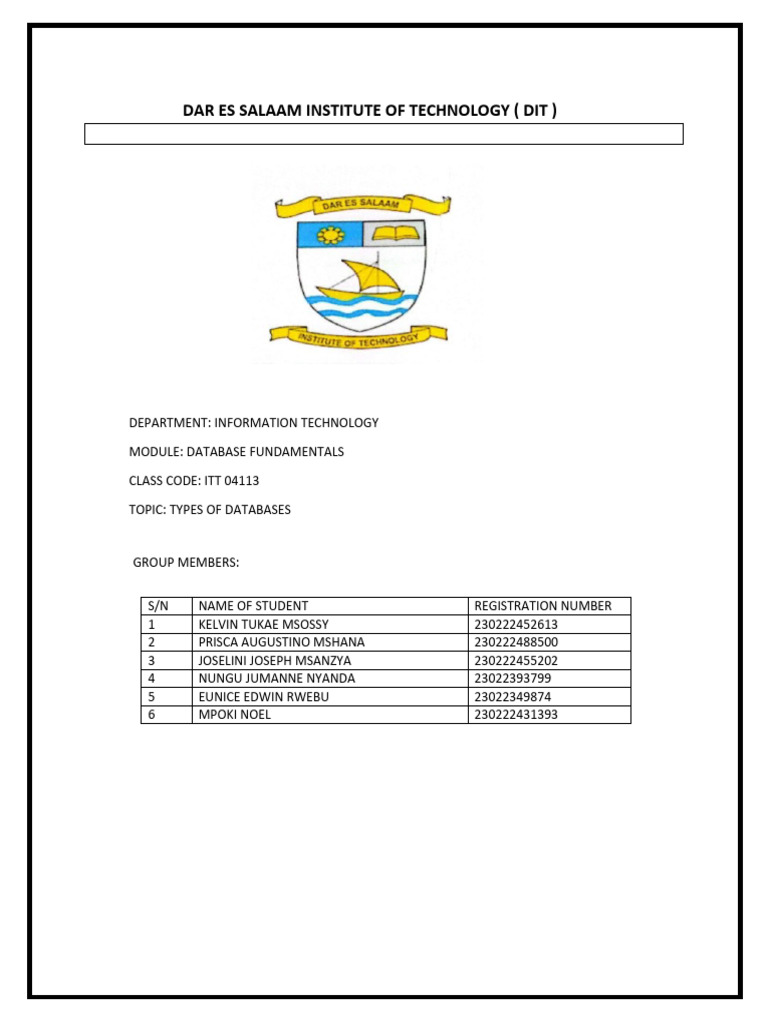 DAR ES SALAAM INSTITUTE OF TECHNOLOGY ( DIT )