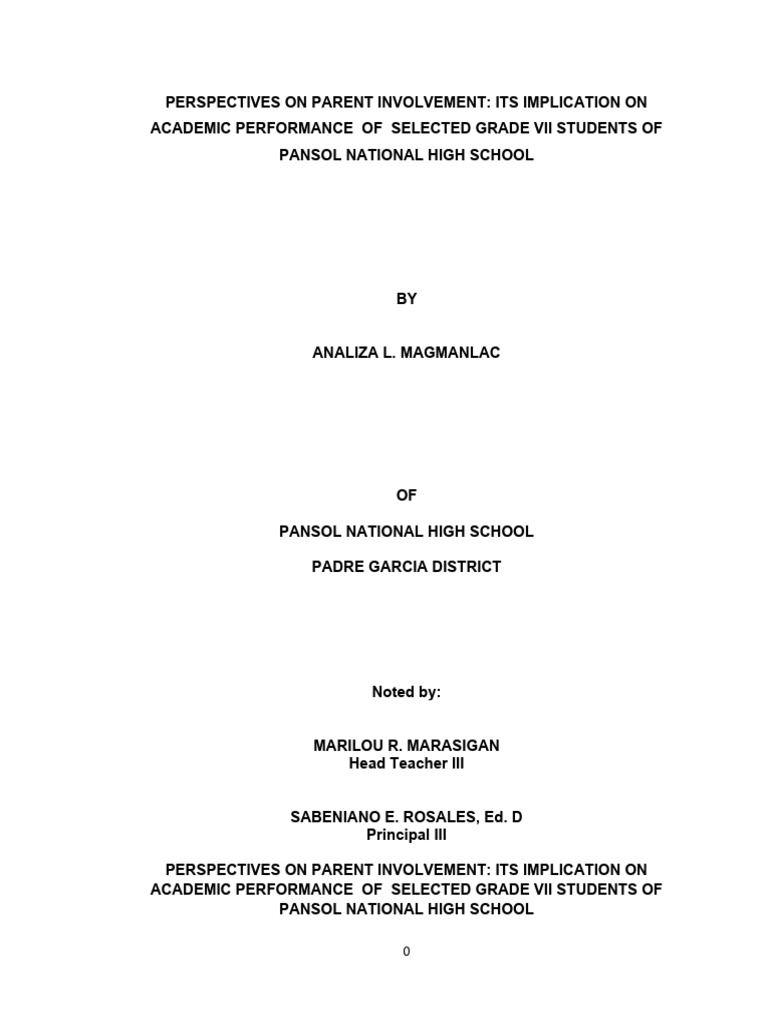 PERSPECTIVES ON PARENT INVOLVEMENT: ITS IMPLICATION ON