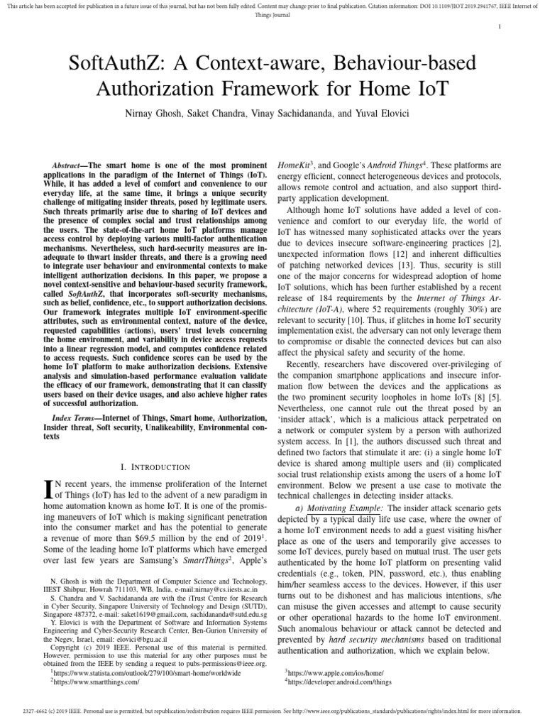 home IoT platform to make authorization decisions. Extensive Recently, researchers have discovered over-privileging of