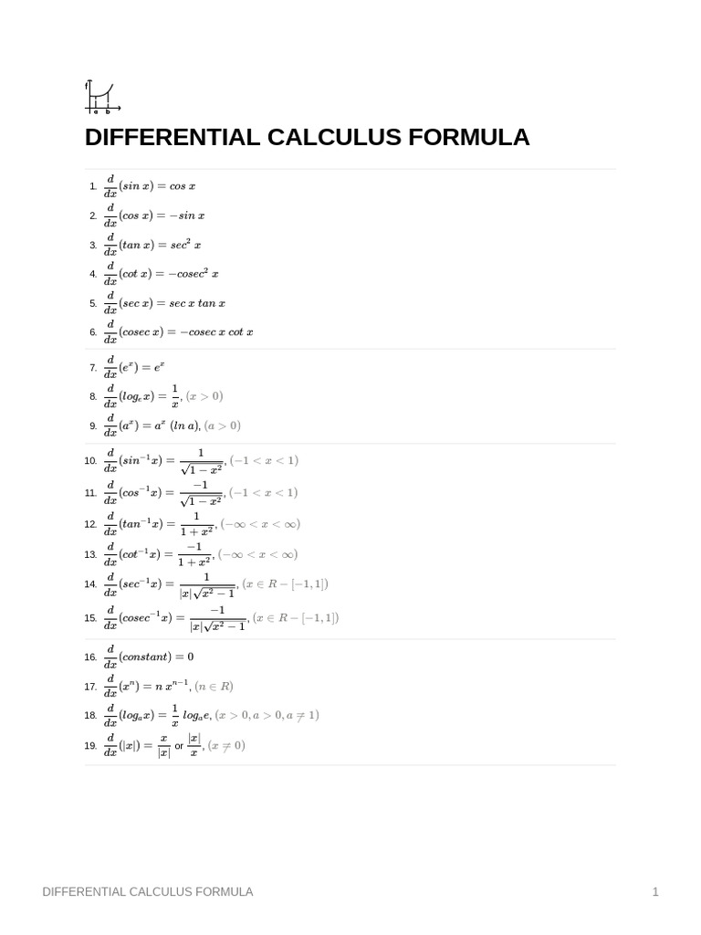 DIFFERENTIAL CALCULUS FORMULA 1