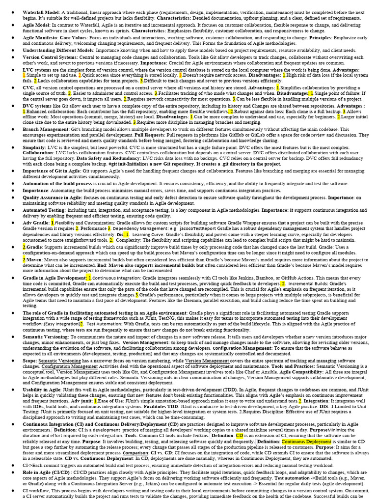 • The role of Gradle in facilitating automated testing in an Agile environment: Gradle plays a significant role in facilitating automated testing Gradle supports