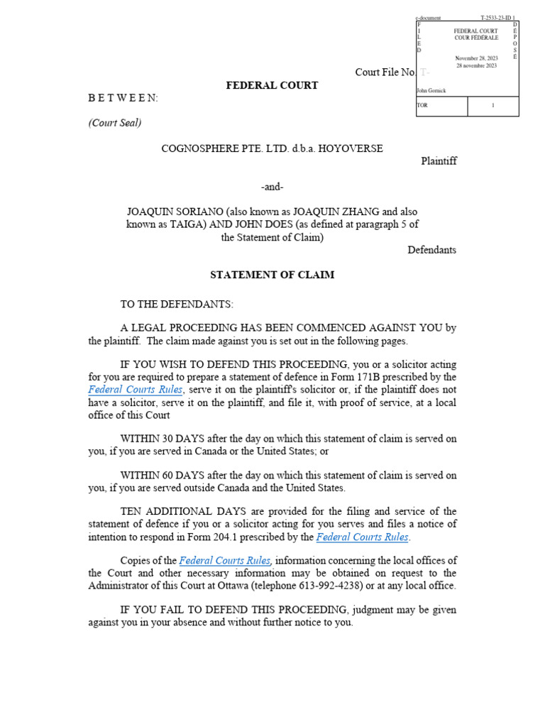 HoYoverse but known to the Defendants.