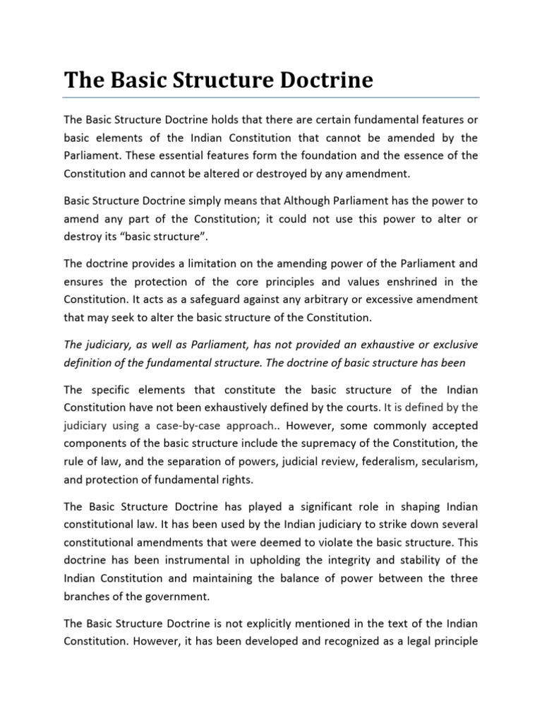 Basic Structure Doctrine simply means that Although Parliament has the power to