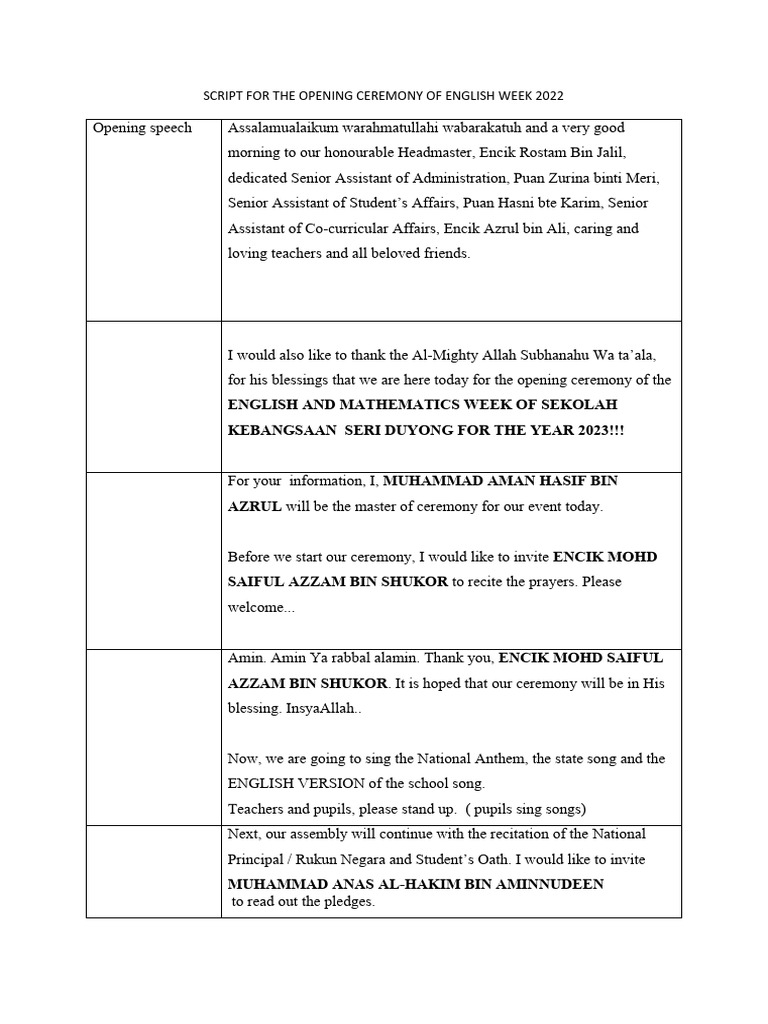 SCRIPT FOR THE OPENING CEREMONY OF ENGLISH WEEK 2022