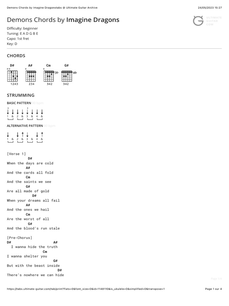 Demons Chords by Imagine Dragonstabs @ Ultimate Guitar Archive 24/05/2023 15:27