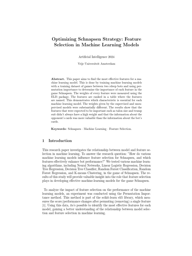 Forest Regression, and K-means Clustering, in the game of Schnapsen. The re-