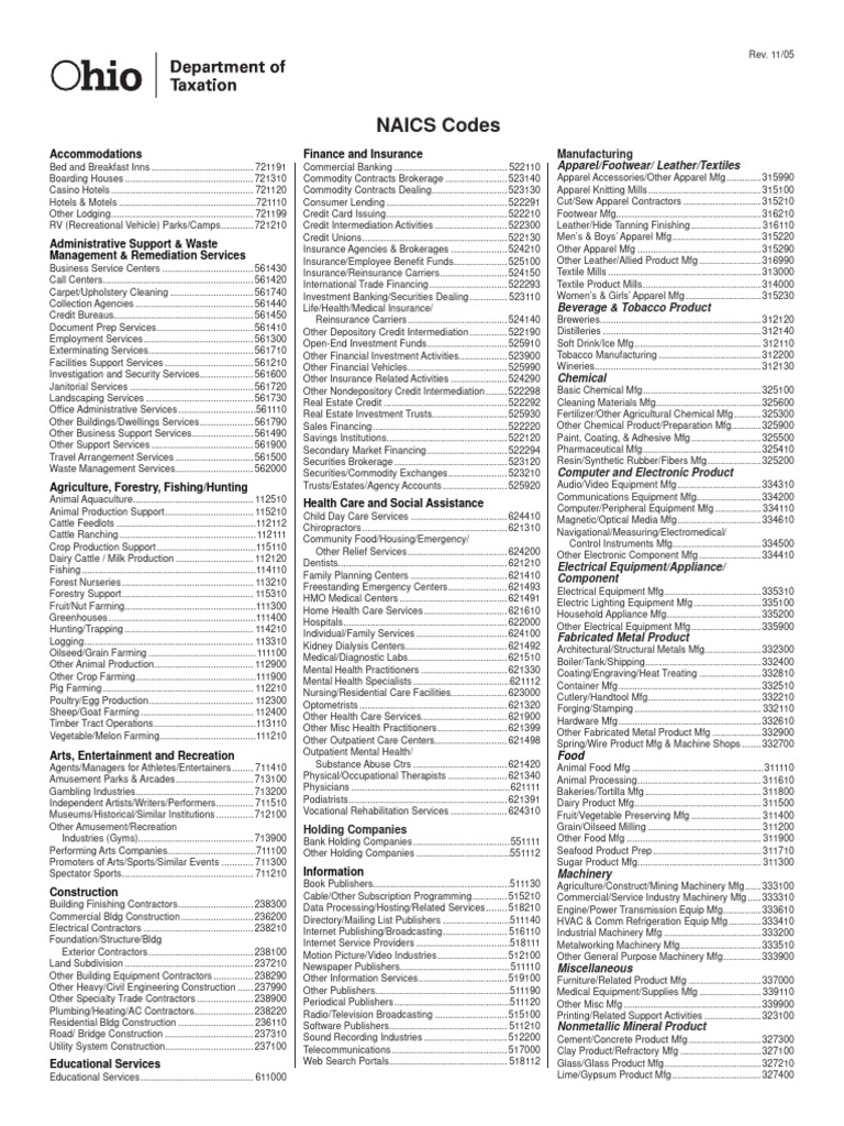 NAICS Codes for Various Industries