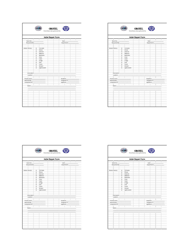 Room No.___________________ Date:_____________________ Room No.___________________ Date:_____________________